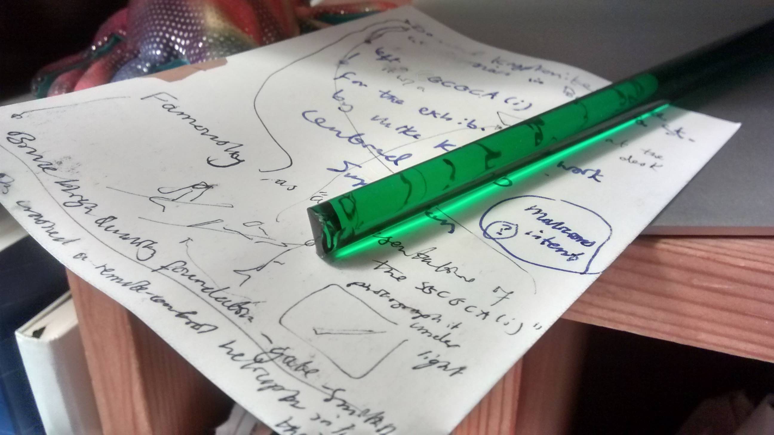 The ongoing motif of Kandor in the Kelley’s work serves as the spark of inspiration for this new expression of powerlessness via a gesture with exhibitionary intent; the placement of a piece of ‘kryptonite' (a green crystalline material originating from Superman’s home world of Krypton that emits a peculiar radiation that weakens Superman) at the Britannia Street gallery entrance, as a memorial to the destroyed Fortress.