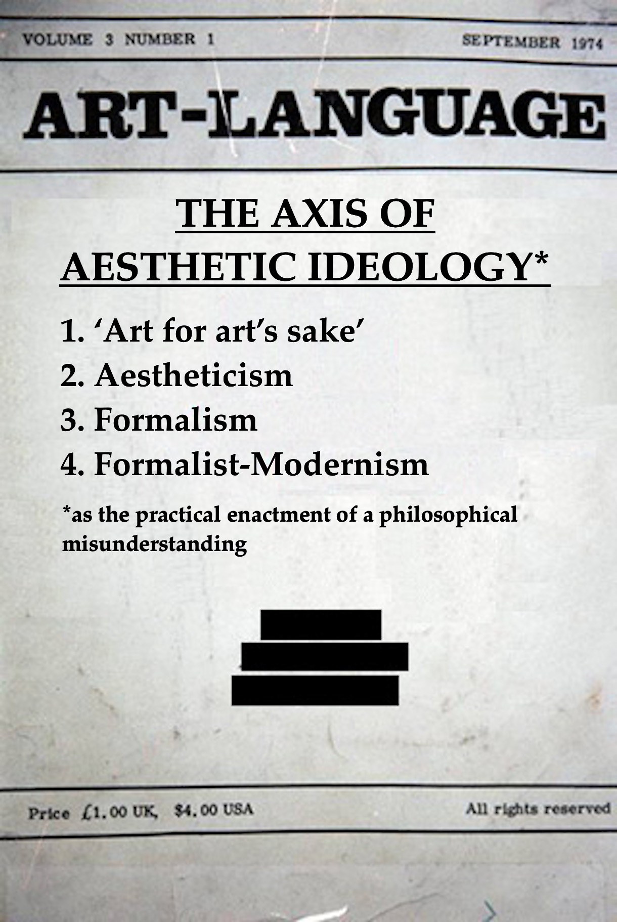 The Axis of Aesthetic Ideology; Art-Language, Vol.3, No.1 (September 1974) [REDACTED]; The Conceptual Underground (2018), GCGCA(i)